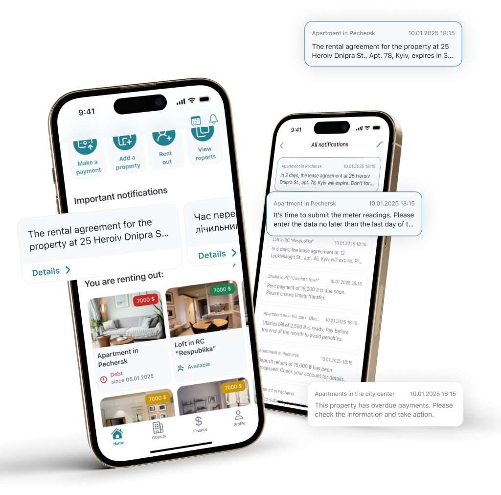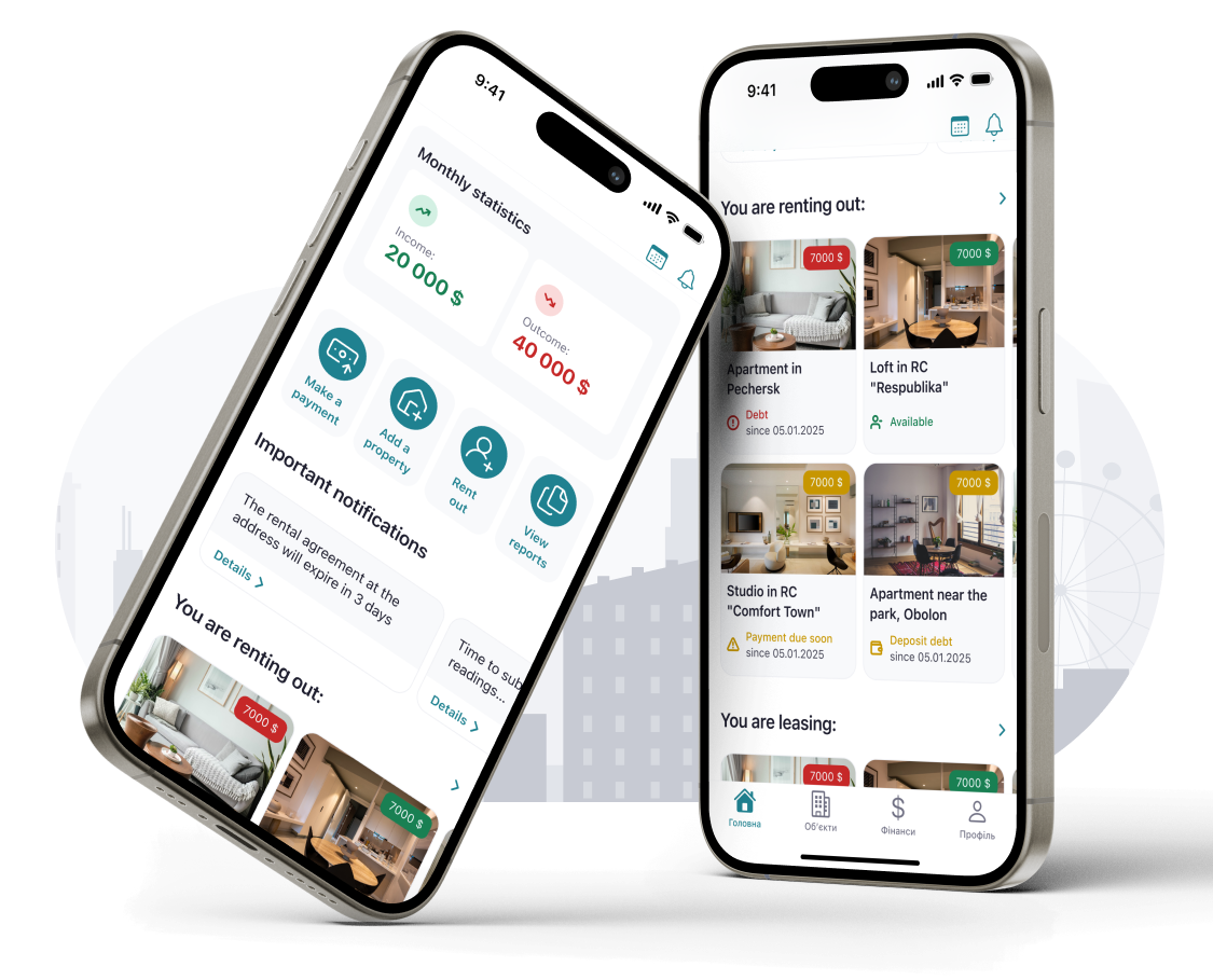 Оренда, платежі, фінанси й аналітика - все під контролем у вашому смартфоні.
